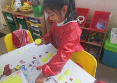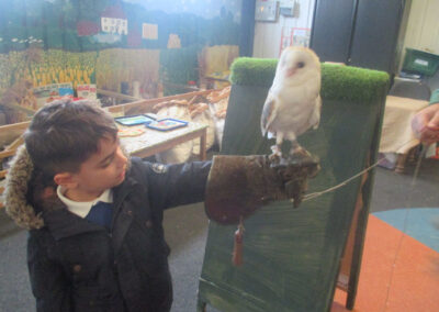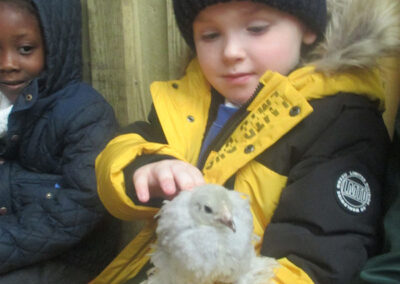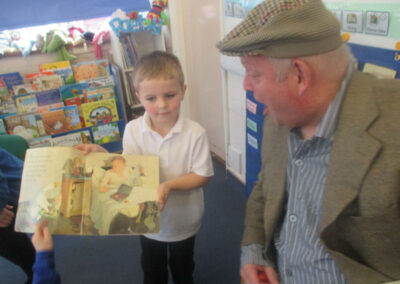 In our classroom you will find an interactive whiteboard, graphics and role play area and we also do some of our learning outside.
